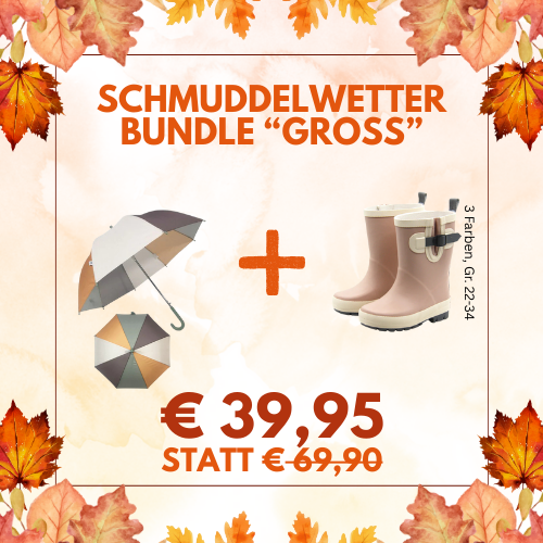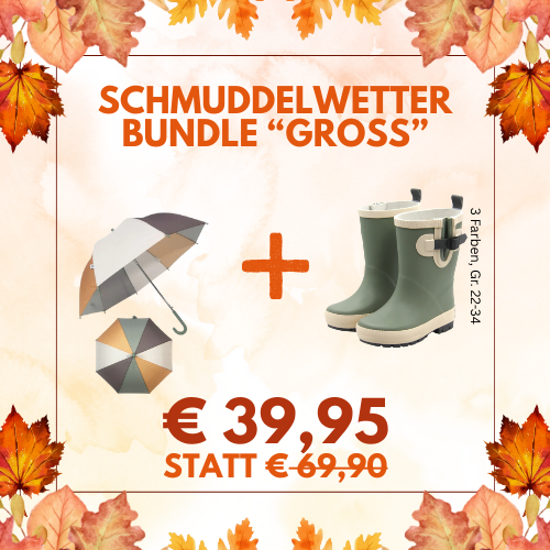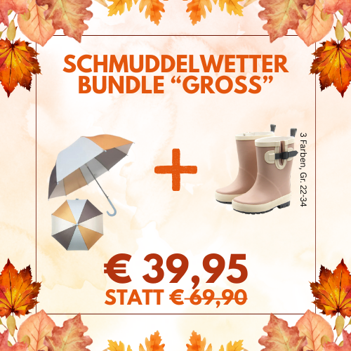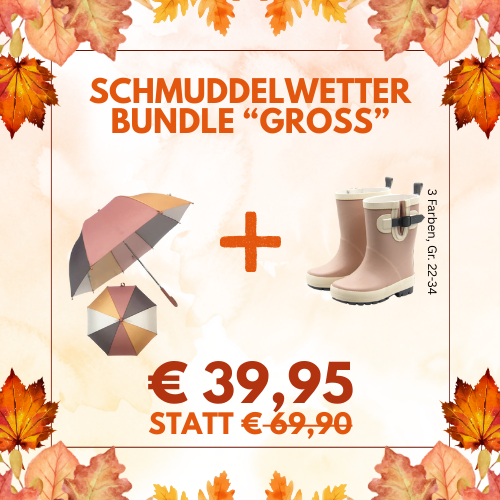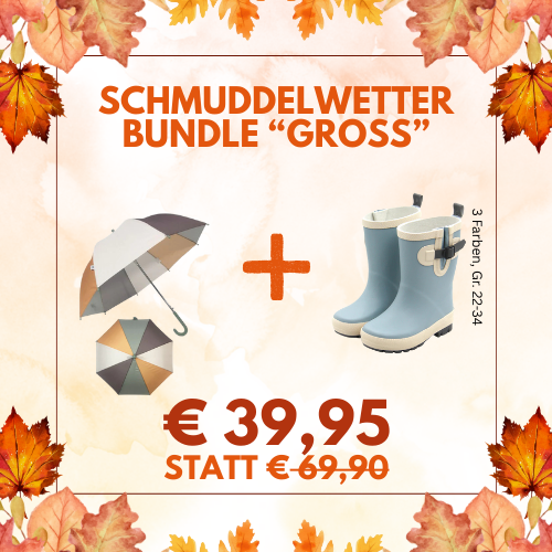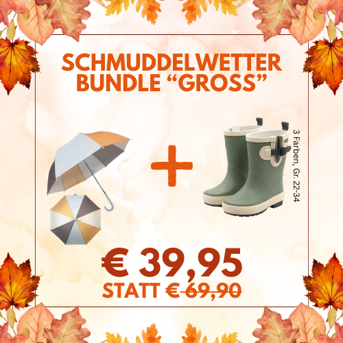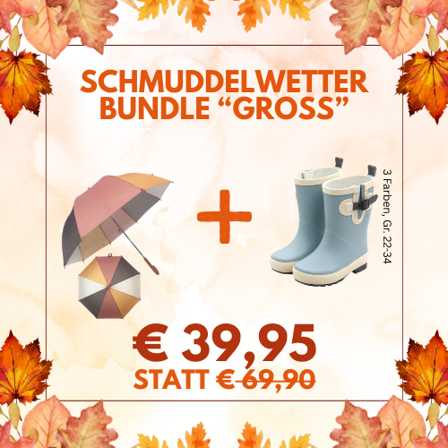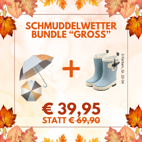 Die Farbenpracht der Blätter ist ein willkommener Herbstbote. Das kalte und regnerische Wetter hingegen oft wenig. Aber wie sagten unsere Großeltern immer: "Es gibt kein schlechtes Wetter, nur falsche Kleidung". Für die richtige Ausrüstung sorgt deshalb nun das "Schmuddelwetter-Bundle" bestehend aus Regenschirm und Gummistiefel von Follow the Duck.
